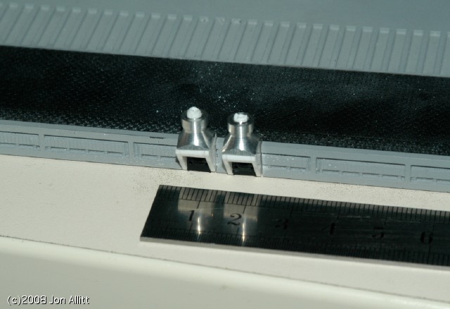 These are the mounting points for the front ramp struts (based on the full sized DS). Made from 1mm styrene, acrylic and machined aluminium.